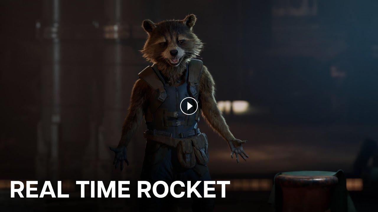 Stepping in front of a TVA Timedoor, fans at D23 Expo last summer were able to directly interact and speak with Rocket Raccoon from Marvel Studios’ Guardians of the Galaxy as he answered their most burning questions! The experience won a VES Award for “Outstanding Visual Effects in a Special Venue Project” and was brought to life through the innovative collaboration between Industrial Light & Magic, Marvel Studios, and Disney’s StudioLAB where markerless mocap actors were able to control a high-fidelity photoreal render of Rocket in real-time.